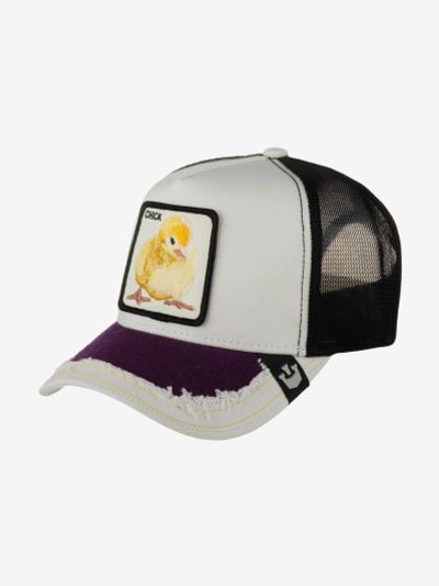 Бейсболка с чайкой Beach Bum из культовой коллекции Animal Farm. Бейсболка изготовлена из полиэстера и спандекса. На передней твердой панели белой бейсболки — нашивка с изображением летящей чайки на кожаном черном фоне и желтой надписью Beach Bum. Дословно надпись переводится как "пляжный бум", а на сленге означает "бездельник, который много времени проводит на пляже". Сверху на модели — черная контрастная пуговка. Внутри козырек обтянут синим материалом. Для вентиляции предусмотрена белая 1-слойная сетка. Внутренняя лента по окружности головы обтянута синей влагопоглощающей махровой тканью. На изогнутом козырьке — ярлычок с логотипом бренда и 3 зигзагообразные розовые строчки. Размер бейсболки регулируется с помощью пластиковой розовой застежки. Длина козырька 7 см, глубина 11 см. Внутри бейсболки есть нашивка с надписью Goorin Brothers и датой основания бренда: 1895.