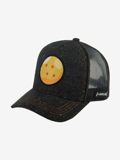 Бейсболка Four Star Ball из коллекции Dragon Ball Z. Черно-белую бейсболку украшает нашивка с одной из жемчужин Земного драконьего жемчуга — яркий шар с 4 звездами. На сеточке сбоку изображение Dragon Radar — устройства слежения, которое делает поиск Dragon Ball более эффективным. Размер бейсболки регулируется при помощи пластиковой застежки. Отличительные знаки бренда — резиновые ярлычки с логотипом и надпись Capslab на внутренних швах. Длина козырька 6.5 см, глубина бейсболки 13 см.