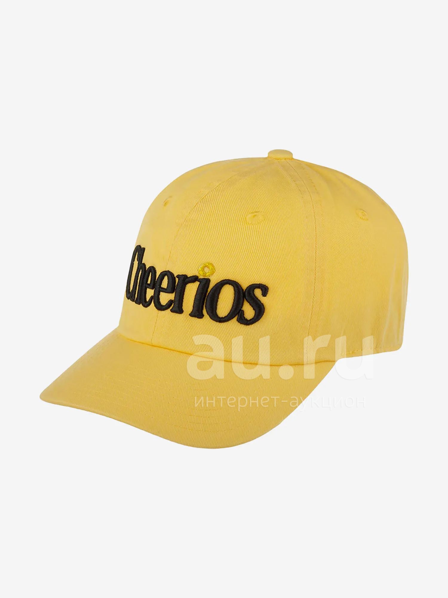 Желтая бейсболка Cheerios Ballpark от культового бренда American Needle. Модель выполнена из бархатистого хлопка. На передней мягкой панели — объемная черная надпись Cheerios, логотип марки овсяных колечек, производимых компанией General Mills. Размер бейсболки регулируется с помощью ремешка и медной пряжки с кнопкой. Для комфортной посадки внутри предусмотрена лента с фирменной нашивкой года основания бренда American Needle — 1918 и фирменной нашивкой Schlitz Beer. Для вентиляции предусмотрены люверсы. Длина козырька 7 см, глубина бейсболки 11 см.