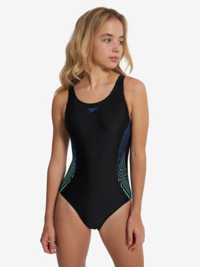 Купальник слитный для девочек Speedo Digital Placement, Черный
