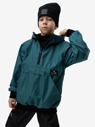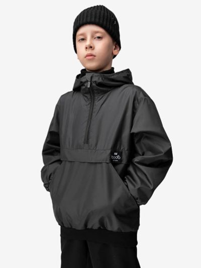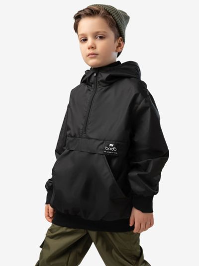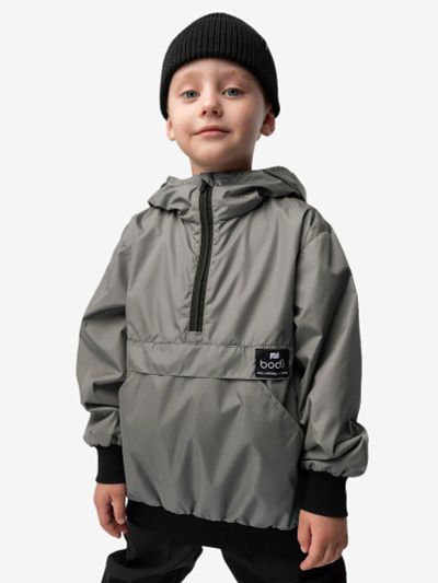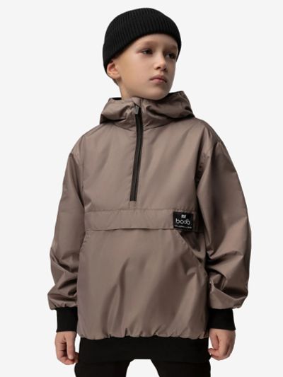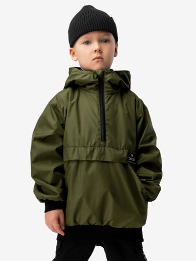 Ветровка (анорак) для детей. Материал верха: дюспо; материал подкладки: 100% хлопок; материал подкладки на рукавах: таффета. Материал дюспо водоотталкивающий, воздухообменный и ветрозащитный. Детали: сквозные боковые карманы, несъемный капюшон на стойке закрывает шею. Температурный режим от 8 до 15 °C.