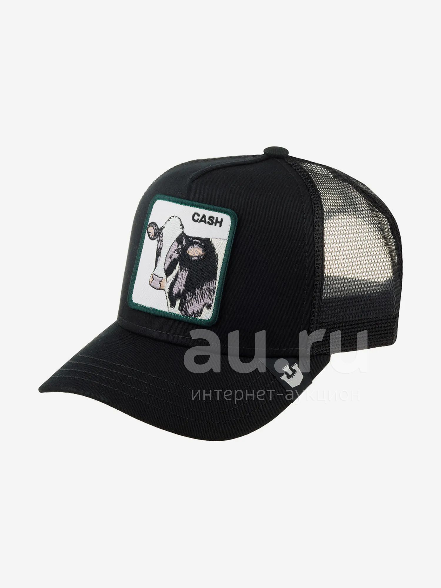 Черная бейсболка с коровой Cash из культовой коллекции Animal Farm от американского бренда Goorin Brothers. На передней панели бейсболки — тканевый патч с изображением пятнистой коровы и надписью Cash, что переводится как "наличные деньги", а на сленге характеризует человека, который настолько хорош, что с ним все хотят подружиться. На изогнутом козырьке — ярлычок с логотипом бренда. Размер бейсболки регулируется с помощью пластиковой застежки. Длина козырька 7 см, глубина бейсболки 11 см. Создатели бренда в коллекциях 2022/23 обновили систему защиты от подделок: текстильный ярлычок у застежки, а также брендированные швы и измененный дизайн фирменной нашивки внутри.