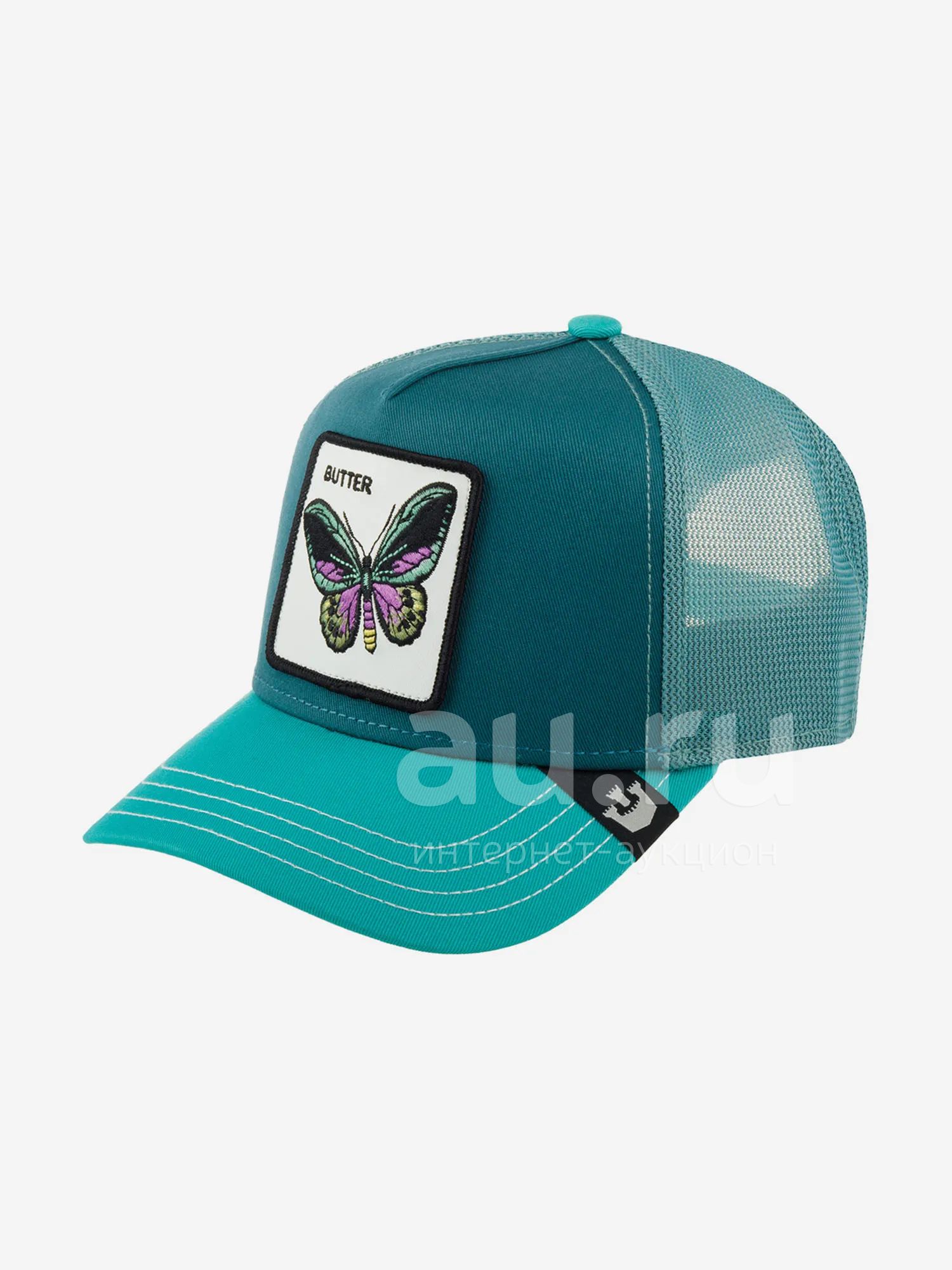 Бейсболка с бабочкой Butterfly из культовой коллекции Animal Farm от американского бренда Goorin Brothers. На передней панели изумрудного оттенка с гладкой плотной сеточкой — кожаный белый патч с вышитым изображением бабочки и надписью Butter, что можно перевести как "масло" или на сленге употребляется в значении "льстить". Пуговка на макушке, пластиковая застежка и внешняя часть козырька светло-зеленые. Изнанка козырька белая. На изогнутом козырьке — ярлычок с логотипом бренда. Внутри по окружности головы вшита бежевая махровая лента для комфортной посадки. Бейсболки Goorin Bros. — эпатаж в духе современной молодежи. Создатели бренда в коллекциях 2022/2023 обновили систему защиты от подделок: добавили текстильный ярлычок Farm рядом с застежкой и брендированные швы, а также изменили дизайн фирменной нашивки внутри.