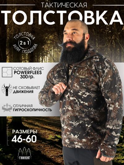 3 459 руб.Толстовка мужская FINNHUNT 1/2 Zip Universal Summer Camo, Зеленый