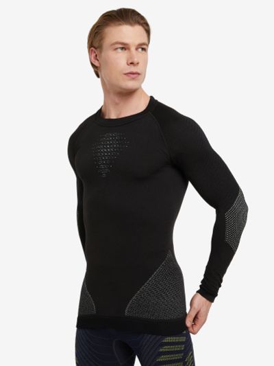 Термофутболка UYN Active Comfort — всесезонный базовый слой, который станет отличным выбором для активных физических нагрузок. Термобелье этой серии подходит для умеренно прохладной погоды. Объемные панели Coolvent впитывают пот и отводят его от кожи, что позволяет сократить потоотделение и избежать перегрева. Конструкция Hypermotion обеспечивает максимальную свободу движений. Вся плечевая зона и рукава — это один бесшовный элемент, который соединяется с остальными деталями при помощи плоского шва. Это позволяет поддерживать осанку и мускулатуру плечевой зоны, а также помогает контролировать положение корпуса во время продолжительных тренировок. Вставки Heatmemory с более плотной вязкой и ворсом на внутренней стороне, расположенные в наиболее чувствительных к холоду местах, по бокам, на плечах и локтях, не дают телу остыть. Полупрозрачная вязка Drylight в области подмышек для максимально эффективного охлаждения. Благодаря отсутствию швов и резинок термофутболка не сдавливает и не натирает кожу. Ткань