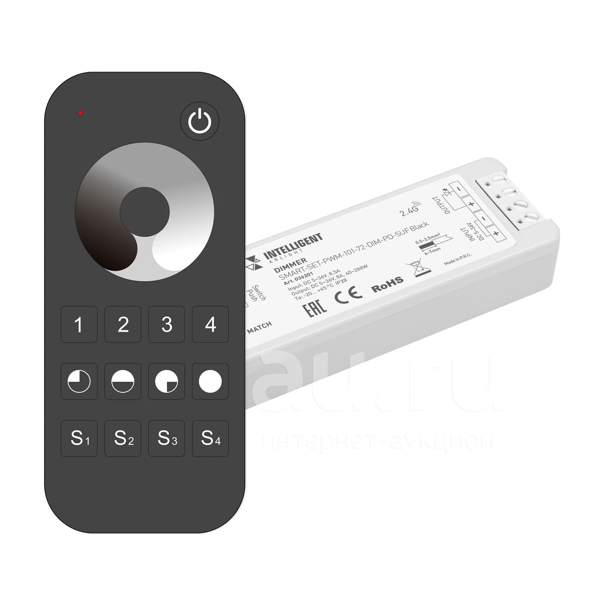 INTELLIGENT ARLIGHT Диммер SMART-SET-PWM-101-72-DIM-PD-SUF Black (5-36V, 1x8A, x4, ПДУ 13кн, 2.4G) (IARL, IP20 Пластик, 5 лет)