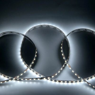 Светодиодная лента RT-A120, открытая . Светодиоды 2835, 120 шт/м ( 600 шт на 5 м), белая плата, ширина 8 мм, скотч 3M. Цвет ДНЕВНОЙ 5000 K , цветопередача CRI 95..98 , угол 120°. Питание 24V, мощность 9.6 Вт/м ( 48 Вт на 5 м). Размеры 5000 x 8 x 1.8 мм. Мин.отрезок 50 мм, 6 светодиодов. Цена за 1м.