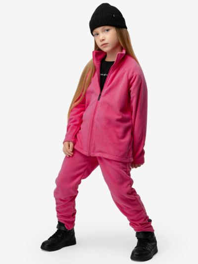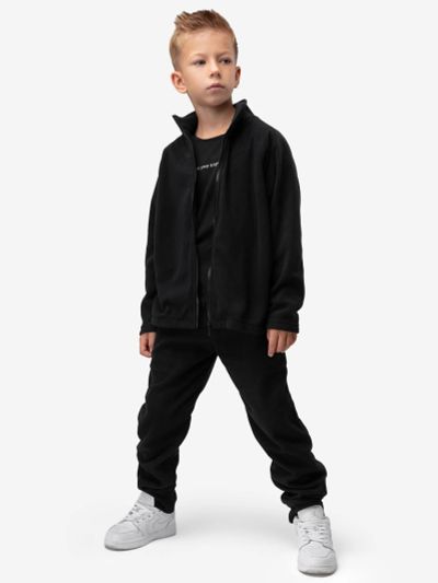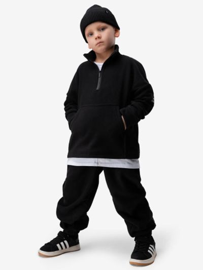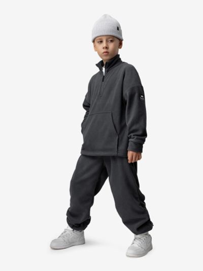 Флисовый костюм — идеальный вариант промежуточного слоя утепления в период холодов, надеваемый под верхнюю одежду поверх белья. Плотный, мягкий и гипоаллергенный флис отлично справляется с испарениями тела: его волокна не впитывают, а пропускают водяные пары во внешнюю среду, сохраняя сухость и удерживая тепло. Толстовка: воротник-стойка, рукава на манжетах, свободный покрой, карман-кенгуру. Брюки джоггеры: пояс на эластичной брендированной резинке, низ изделия на манжетах. Состав: флис из 100% полиэстера.