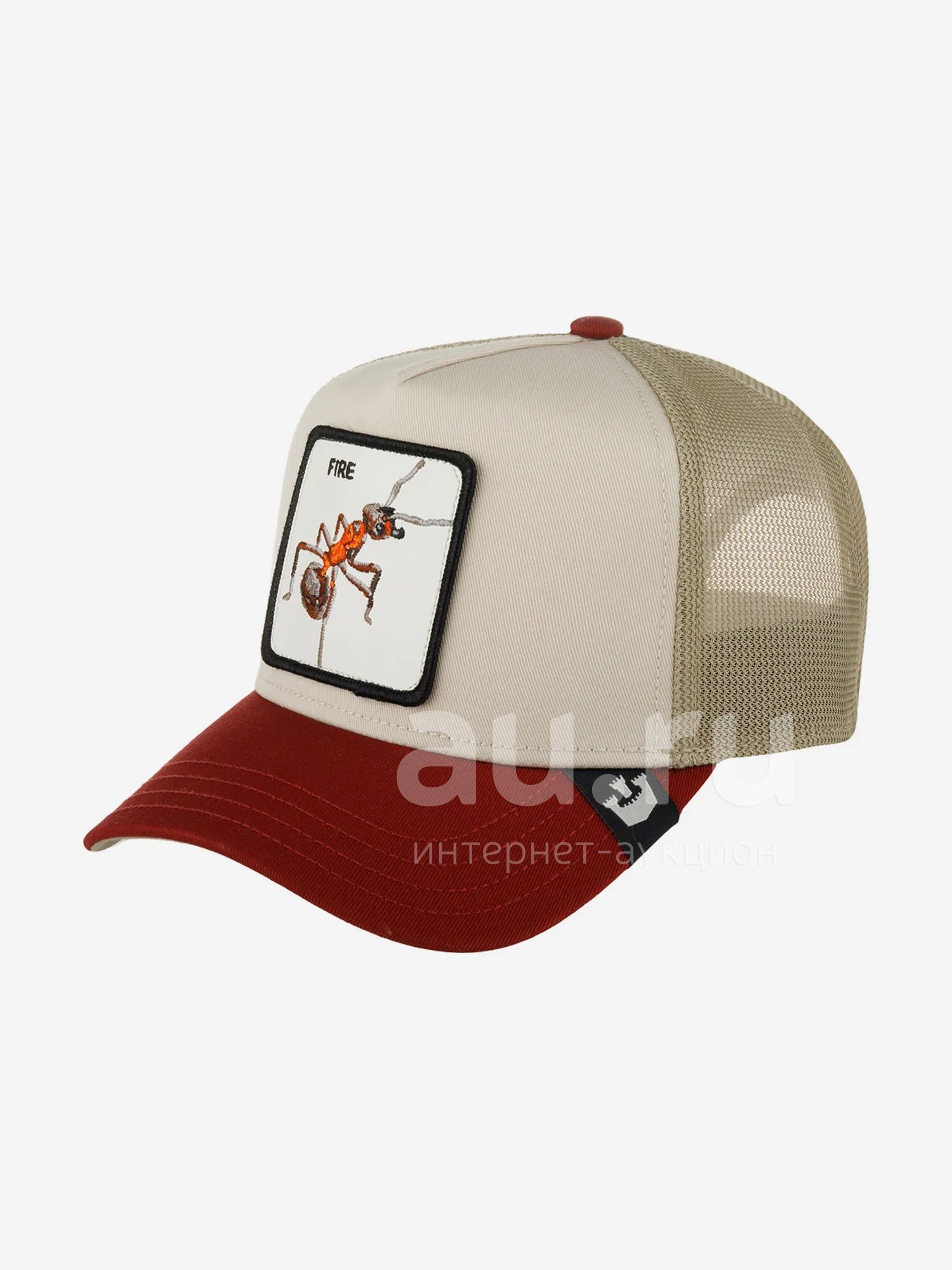 Бейсболка с муравьем Fire из культовой коллекции Animal Farm от американского бренда Goorin Brothers. На передней твердой бежевой панели бейсболки с плотной сеточкой — патч из белой экокожи, на котором вышиты изображение муравья-пожарного и надпись Fire. В брюшке у этого вида насекомых спрятана "установка по производству пены" — именно из-за нее этот вид получил такое название. Для комфортной посадки внутри предусмотрена махровая темно-синяя лента. На изогнутом бордовом козырьке — ярлычок с логотипом бренда с изображением средневекового замка. Пуговка на макушке бордовая, изнанка козырька бежевая. Размер бейсболки регулируется с помощью пластиковой застежки. Длина козырька 6.5 см, глубина 11 см. В коллекциях с 2022 года обновилась система защиты от подделок: добавили ярлычок сзади и брендированные швы, а также изменили дизайн нашивки внутри.