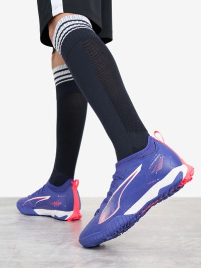 PUMA Ultra 5 Play помогут юному футболисту чувствовать себя уверенно от начала матча до финального свистка. Идеально подходят для полей с мягкими и жесткими натуральными покрытиями. Чтобы уменьшить негативное воздействие на окружающую среду, верх модели частично выполнен из переработанных материалов. 3D-принт в основных зонах контакта с мячом дает больше контроля и помогает совершать более точные удары.