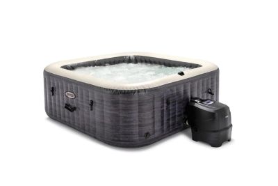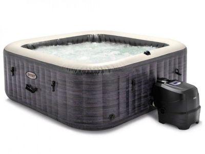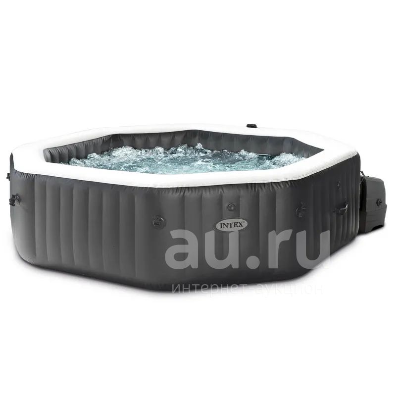 основная информация надувное джакузи intex jet and bubble deluxe onyx - уникальный спа бассейн, который соединяет в себе аэромассаж (массаж пузырьками воздуха) и гидромассаж (массаж струями воды под напором). мощный и высокоэффективный воздушный насос создаёт струйки пузырьков с разным напором, которые благотворно влияют на организм - такой массаж снимает стресс, снижает усталость и повышает настроение. джакузи интекс вмещает до 6 человек одновременно. надувной спа бассейн предназначен для использования на открытом воздухе, но при желании вы также можете установить его и в помещении. материал чаши износоустойчив и не поддается деформации, поэтому вы можете быть уверенными, что джакузи прослужит вам долгие годы. бассейн джакузи intex оборудован системой аэро и гидромассажа. по его периметру расположены целых 140 форсунок для этого. аэромассаж помогает расслабиться, снимает стресс, способствует улучшению сна и поднимает настроение. гидромассаж, напротив, активно стимулирует все мышцы, разгоняет кровь и замечательно бодрит. идущие в комплекте подголовники позволят вам разместиться в бассейне с особым комфортом. в уличное джакузи интекс встроен хлоргенератор, система смягчения и подогрева воды, что обеспечит отдыхающим максимальный комфорт в любую погоду. хлоргенератор позволяет обеззараживать воду, не дает развиваться в ней микроорганизмам, что предотвращает развитие бактерий и цветение воды. контрольный блок устроен таким образом, что управлять всеми системами можно не вылезая из воды! нагреватель повышает температуру воды ориентировочно на 1.5 градуса за каждый час, максимально до 40c. вы сами сможете определить подходящую для себя температуру. для перемещения надувного бассейна на внешней стороне джакузи находятся удобные ручки. для большего комфорта у джакузи серии jet bubble deluxe onyx - беспроводная и отсоединяемая панель блока управления, которая может работать 48 часов без подзарядки. на верхней части спа-бассейна имеется специальный зажим благодаря которому можно разместить панель в удобном для использования положении. одним нажатием кнопки вы сможете регулировать температуру воды, включить и выключить аэромассаж, не покидая джакузи. для работы встроенной системы очистки воды salt water system (хлоргенератора) необходима пищевая соль (приобретается отдельно). в комплект входят: джакузи с беспроводным сенсорным управлением, включающим фильтрующий насос, систему смягчения, нагревания и дезинфекции воды; сменный фильтр-картридж - 3 шт.; тент; подстилка; 2 подголовника; инструкция по эксплуатации. дополнительные характеристики размеры: диаметр внешний - 218 см, диаметр внутренний - 168 см, высота бортика - 71 см. размер джакузи позволяет комфортно разместиться там 6 взрослым людям. материал: плотный трехслойный пвх 0.84 мм. объем: 1098 литров (при заполнении на 75%). джакузи поддерживает форму благодаря запатентованной системе fiber-tech: внутри стенок находится множество внутренних перегородок, состоящих из сотен прочных полиэфирных волокон. общее количество аэромассажных форсунок: 140. общее количество гидромассажных форсунок: 6. мощность встроенного фильтрующего насоса: 1741 л/час. hard water treatment system - система смягчения жесткости воды. salt water system - выработка хлора, обработка и дезинфекция воды. работает от сети 220v. потребляемая мощность: нагреватель - 2200 вт, масса