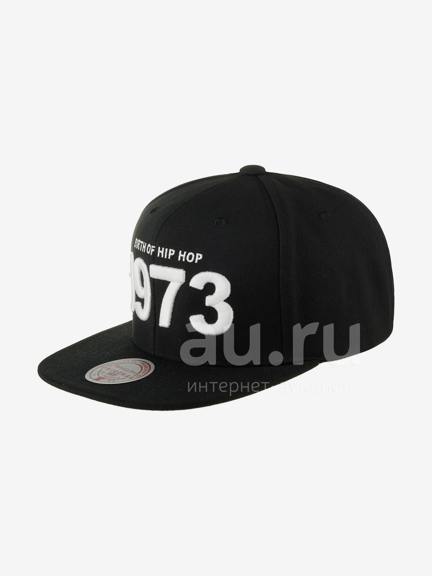 Черная бейсболка с прямым козырьком Hip Hop от бренда Mitchell & Ness. Модель выполнена из плотного материала. На передней твердой панели — белая вышивка Birth of hip-hop/1973 ("Рождение хип-хопа/ 1973"). Сбоку вышивка в стиле граффити. Изнанка козырька светло-серая. Внутри лента с мягким наполнителем. Изнаночные швы обшиты брендированной тканью. Глубина бейсболки 12 см, длина козырька 7 см.