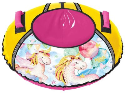 основная информация материал: верх и вставки с рисунком – ткань oxford 500d дно – автотент пвх 610 преимущества: усиленное дно все швы усилены капроновой лентой светоотражающие элементы крепкие эргономичные ручки защитный внутренний клапан с потайной молнией буксировочный ремень устойчивый к морозам материал до -28?с камера в комплекте диаметр: чехол – 1050мм тюбинг в накачанном виде – 950мм
