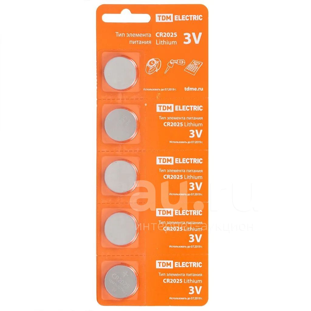 Батарейка TDM Electric, CR2025, Lithium, литиевая, блистер, 5 шт, SQ1702-0028