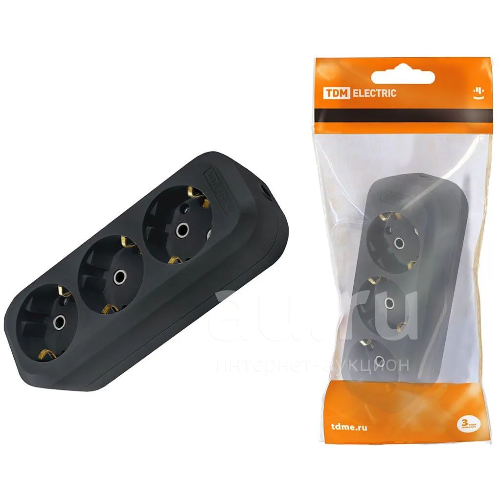 Корпус удлинителя 3 гнезда, 2 + 3, 16 А, 250 В, черный, TDM Electric, SQ1806-0113
