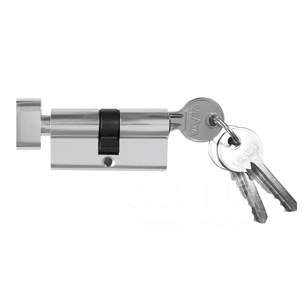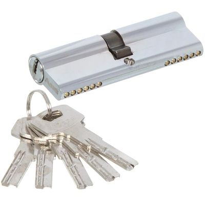 Личинка замка двери Vrata, ЦМВ 90(45/45), 208229, 90 мм, с заверткой, хром, алюминий, 3 ключа