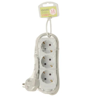 Удлинитель бытовой 3 гнезда, 1.5 м, ПВС, 2х0.75 мм², без заземления, 10 А, 250 В, TDM Electric, У3, SQ1303-0200