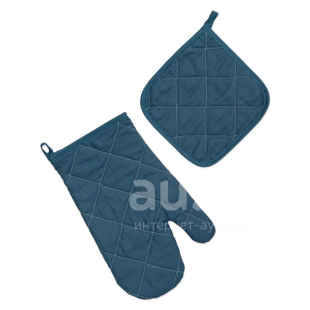 Набор кухонный 2 шт, 30х17см + 20х20см ( варежка, прихватка), 100% хлопок, саржа, Цвет Эмоций Голубая сталь