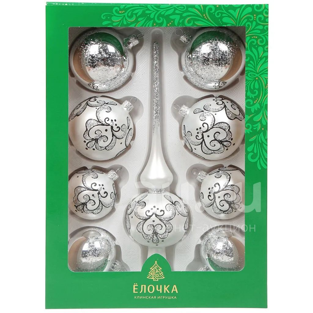 Набор елочных украшений Елочка, Серебристый, 9 шт, белый, стекло, C1322