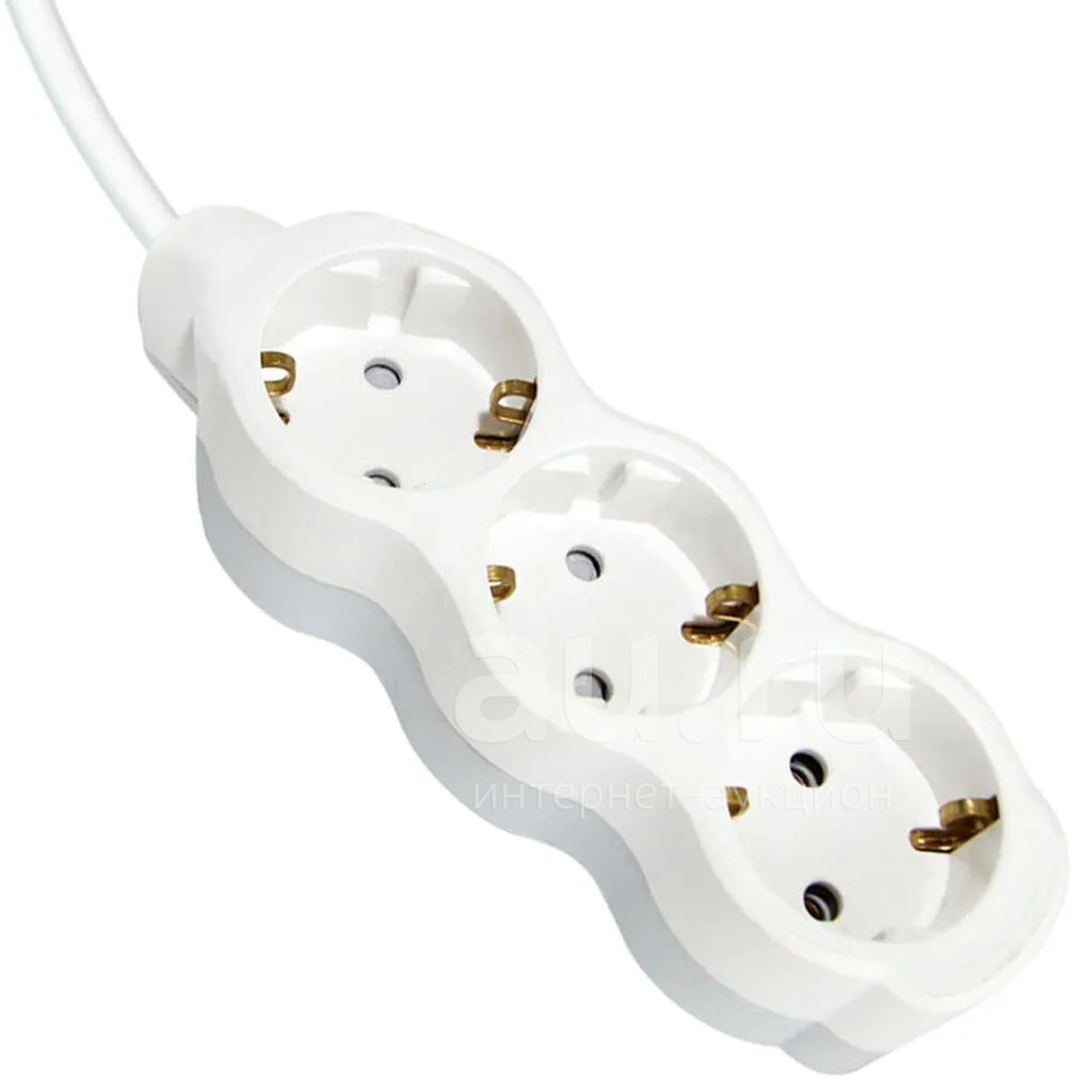 Удлинитель бытовой 3 гнезда, 5 м, ПВС, 3х1 мм², с заземлением, 16 А, 250 В, с защитными шторками, бело-серый, TDM Electric, Люкс УЛ03, SQ1303-0234