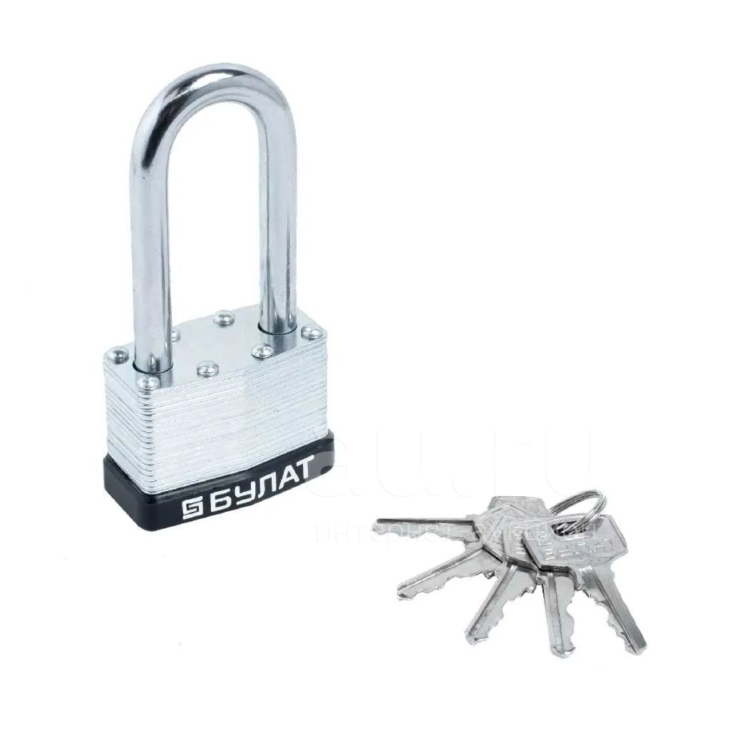 Замок навесной Булат, ВС 0150-01, 13 449, блистер, цилиндровый, серый, 54 мм, 5 ключей