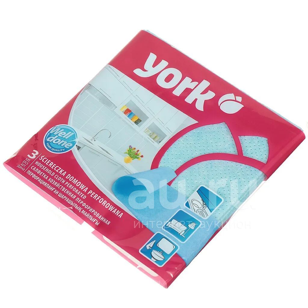 Салфетка бытовая для уборки, нетканый материал, 3 шт, перфорированная, York, 020030