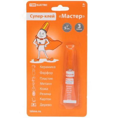 Цианоакрилатный секундный клей мгновенной фиксации. С широким спектром адгезии (лучший результат показывает с пластмассами). Высокая прочность начального схватывания уже через 2 секунды.