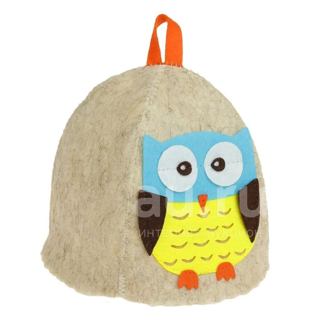 Шапка для бани войлок, белая, с аппликацией Гарри, ПДКШ002