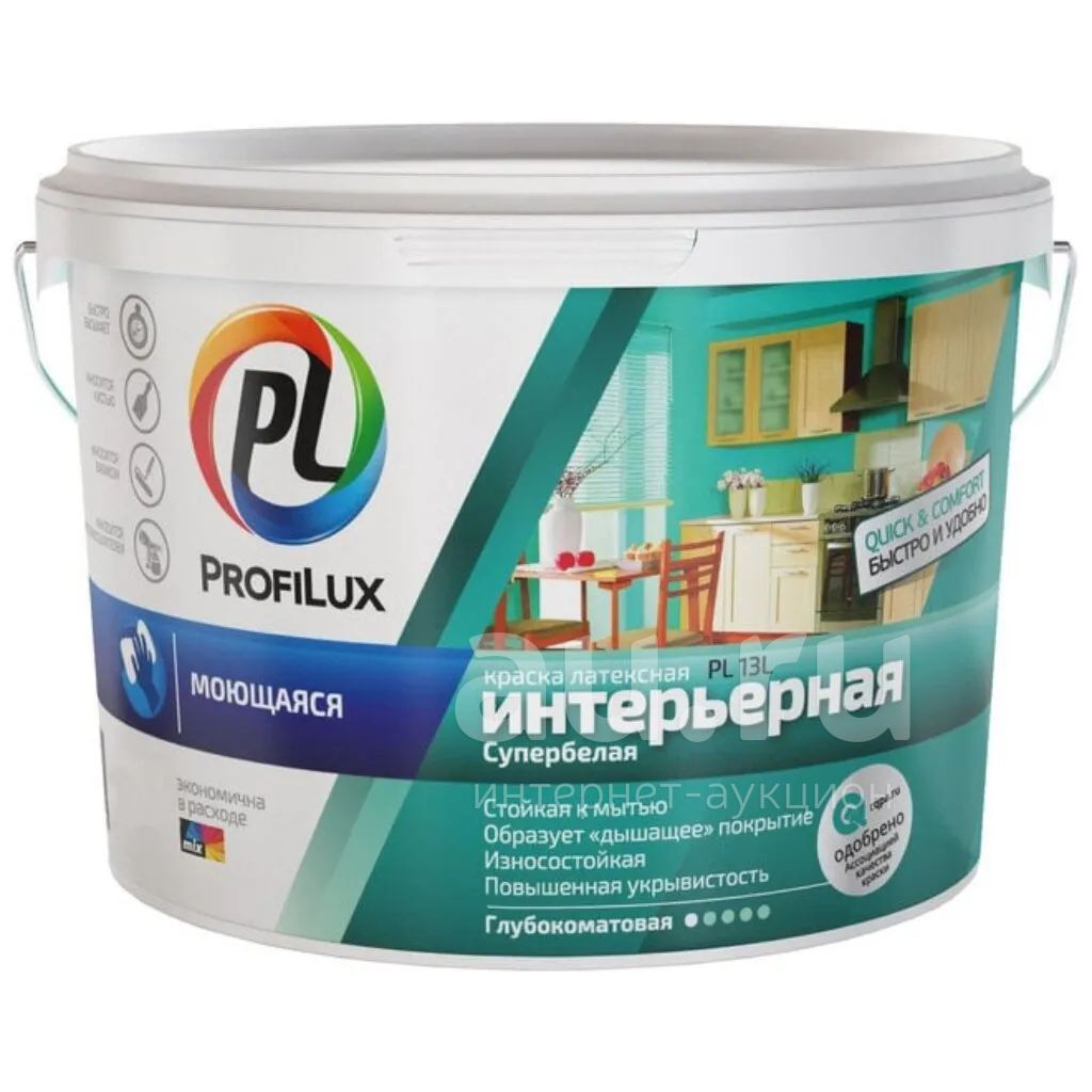 Краска воднодисперсионная, Profilux, PL-13L, латексная, универсальная, моющаяся, влагостойкая, матовая, супербелая, 14 кг