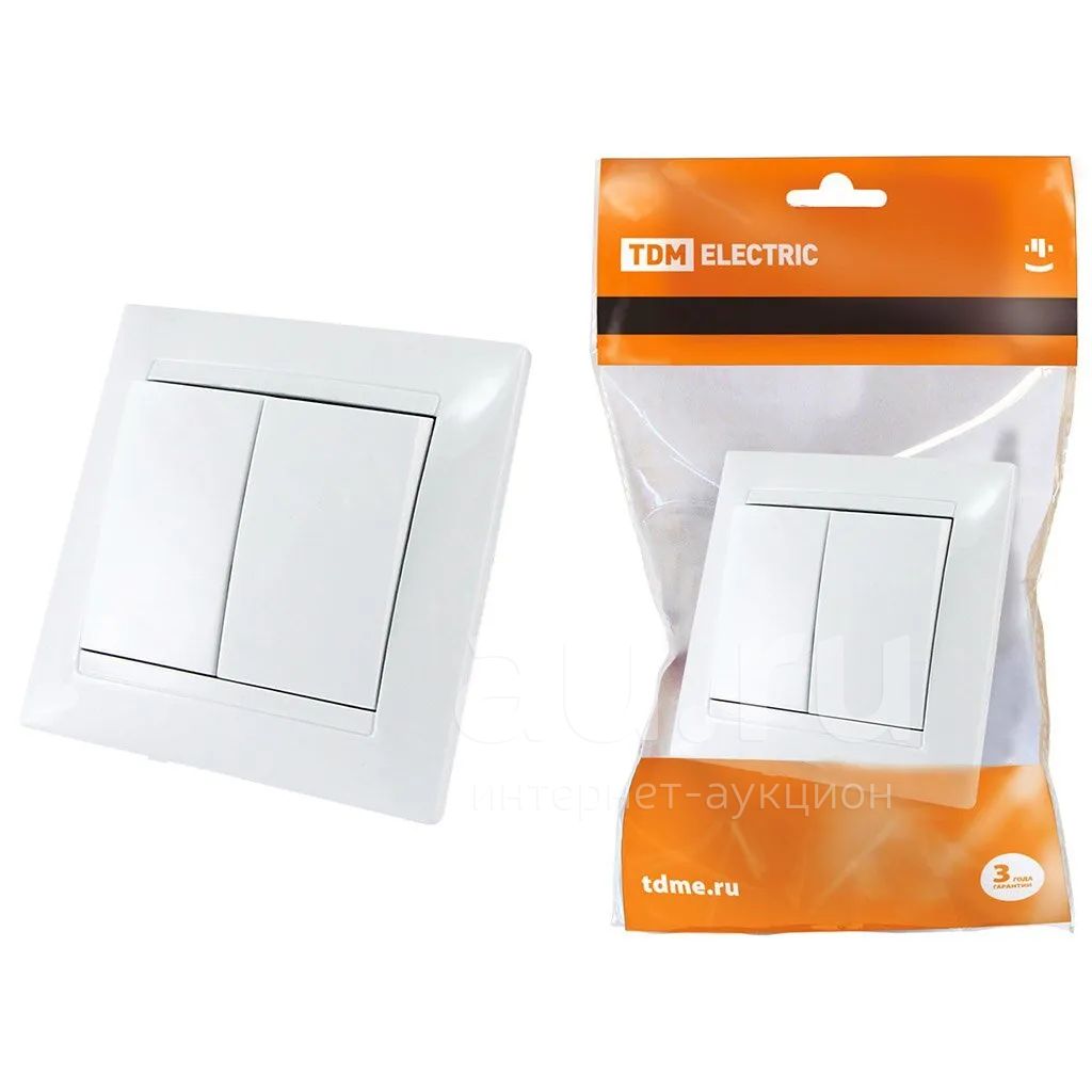 Выключатель скрытой установки, двухклавишный, 10 А, пластик, белый, TDM Electric, Лама, SQ1815-0002