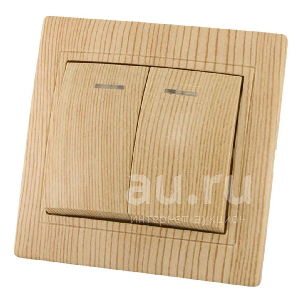 Выключатель скрытой установки, двухклавишный, без заземления, 10 А, керамика, подсветка, сосна, TDM Electric, Таймыр Эко, SQ1814-0205