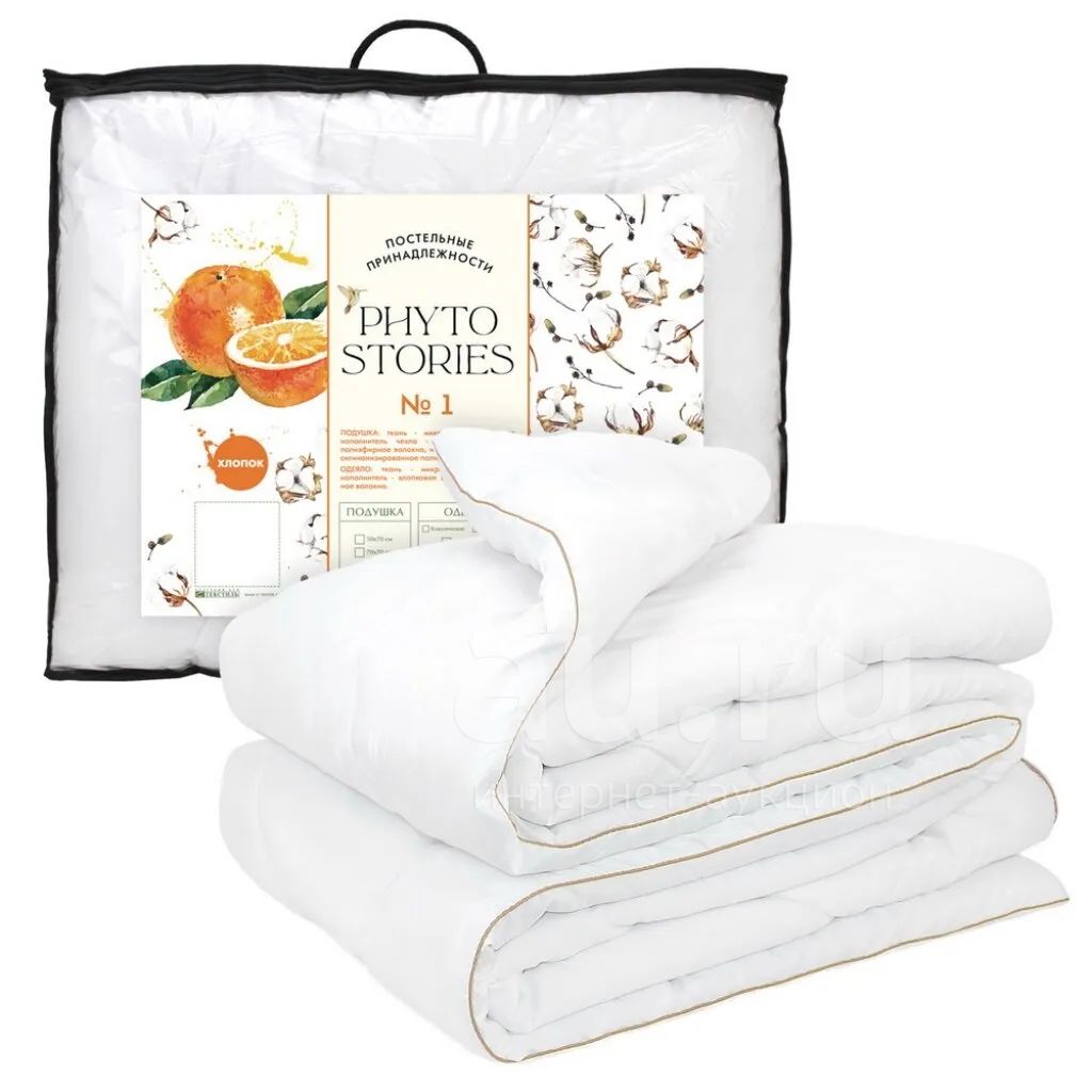 Одеяло 1.5-спальное, 140х205 см, Хлопок, волокно полиэфирное, 200 г/м2, всесезонное, чехол микрофибра 100% полиэстер, кант, Phyto Stories, белое