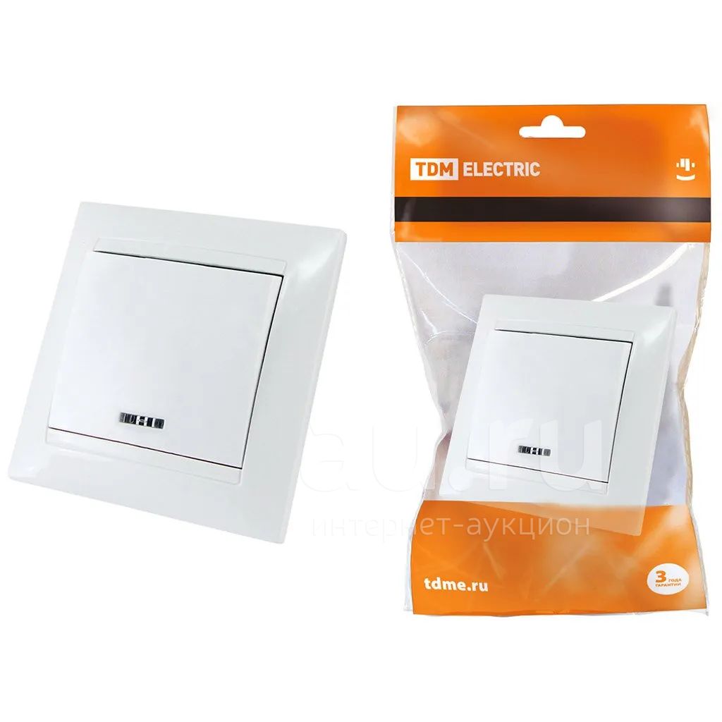 Выключатель скрытой установки, одноклавишный, без заземления, 10 А, подсветка, белый, TDM Electric, Лама, SQ1815-0004