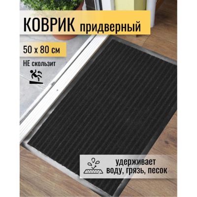 199руб.Коврик грязезащитный, 80х120 см, прямоугольный, резина, с ковролином,...
