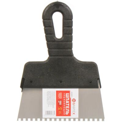 Шпатель для клея, нержавеющая сталь, 150 мм, зубчатый, 10х10 мм, рукоятка пластик, Мастер, 12-8-150