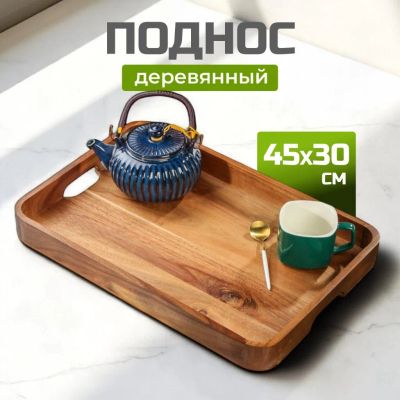 Поднос - это функциональный и стильный аксессуар для сервировки стола и стилизации домашнего пространства. Подносы можно использовать в качестве подставки под горячее, - они не боятся высоких температур. Во избежание сокращения срока службы и ухудшения внешнего вида не рекомендуется мыть изделия из дерева в посудомоечной машине, оставлять надолго в воде, а также пересушивать. После мытья необходимо протереть и дать высохнуть.