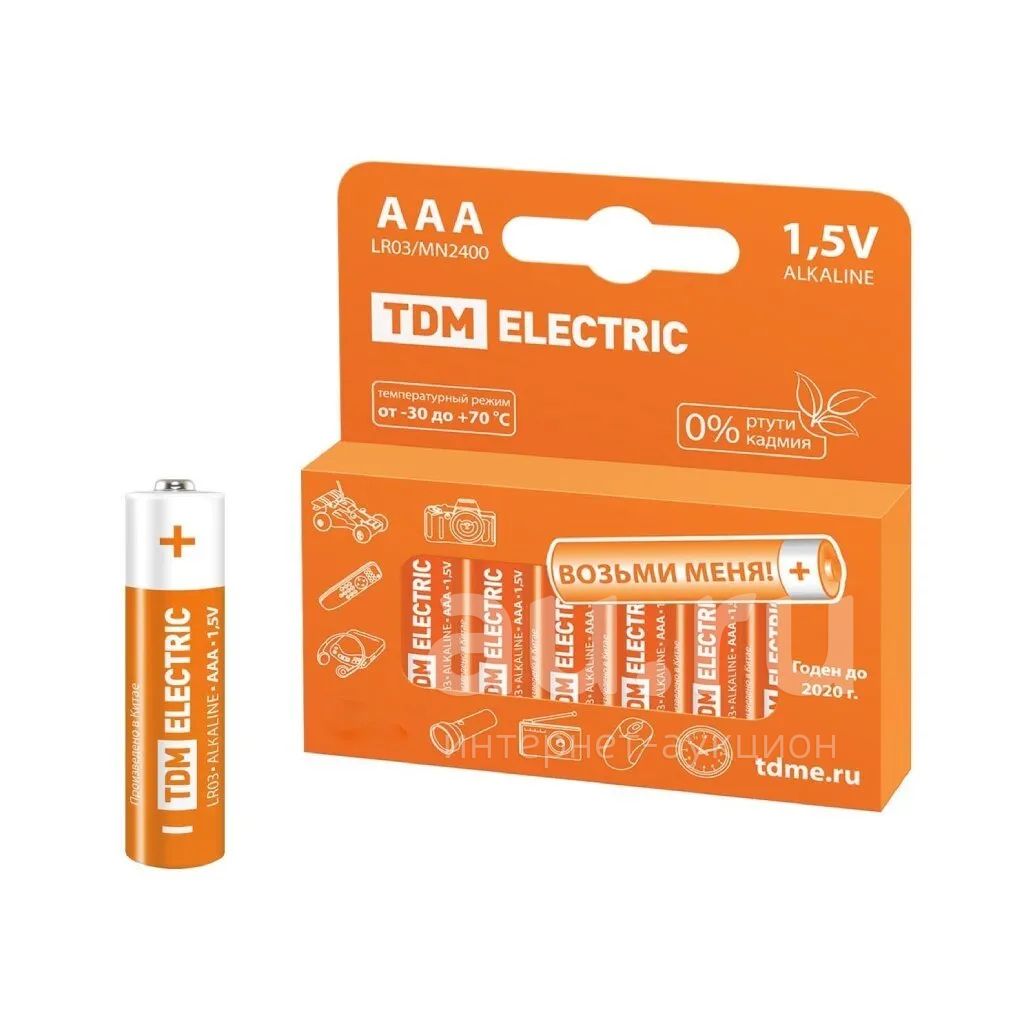 Батарейка TDM Electric, ААА (LR03, 24A), щелочная, 1.5 В, блистер, 10 шт, SC, SQ1702-0057/