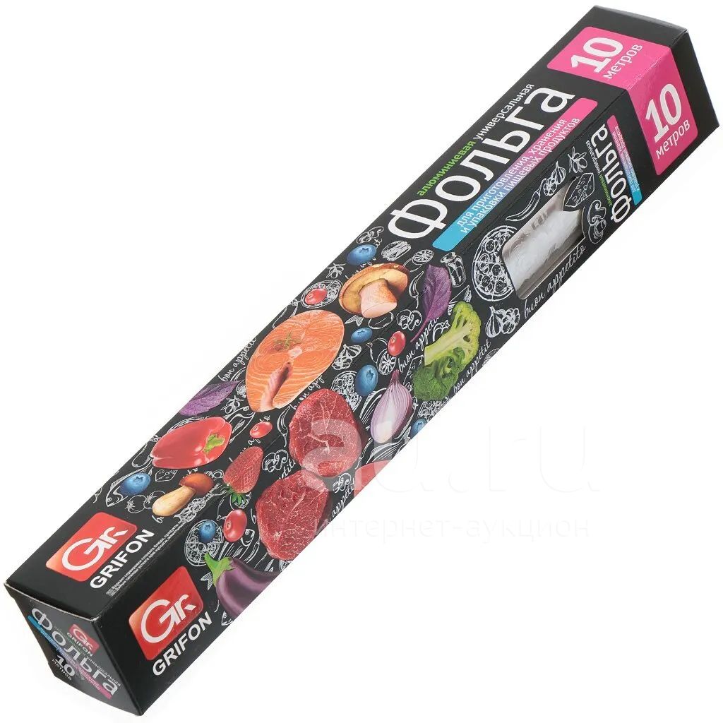 Алюминиевая фольга Grifon предназначена для приготовления в духовом шкафу и хранения продуктов.