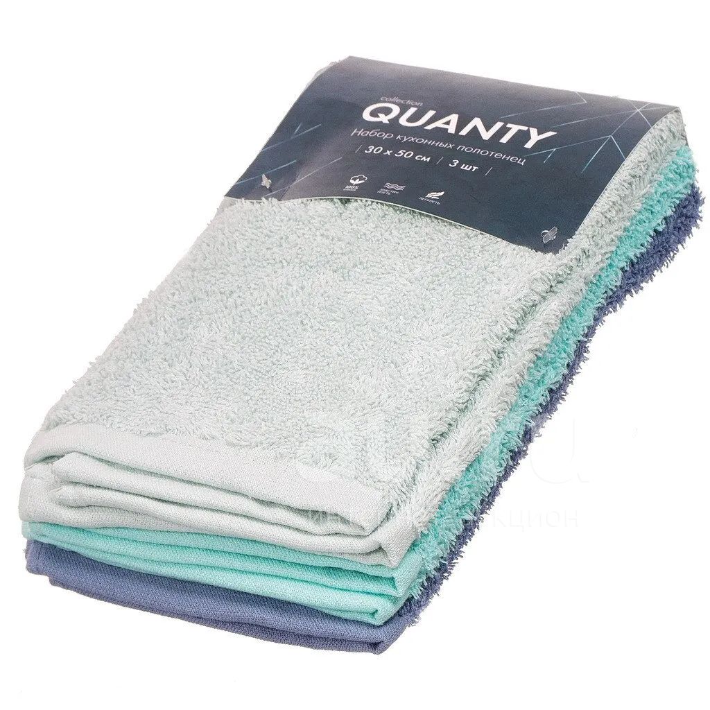 Набор кухонных полотенец 3 шт, 30х50 см, махровый, 100% хлопок, 450 г/м2, Barkas, Quanty, светло-голубой, тиффани, светло-синий, 450гр, Узбекистан, AI-3105005