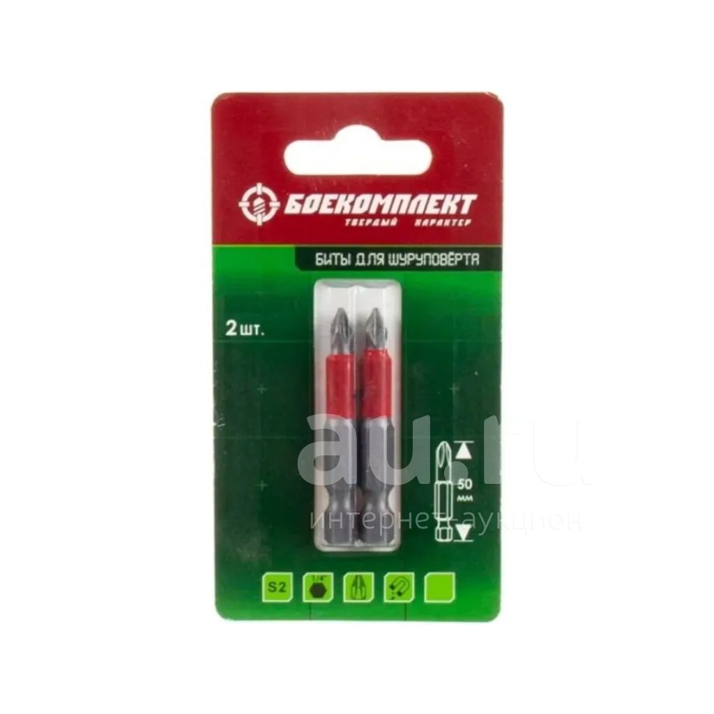 Биты Боекомплект, сталь S2, Pz2, 50 мм, 2 шт, магнитный адаптер, индивидуальная упаковка