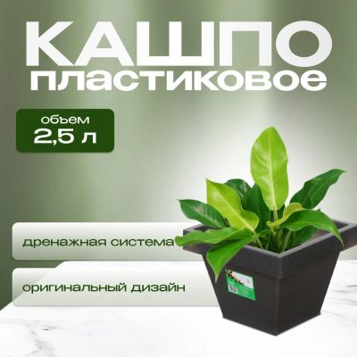 1 490руб.Кашпо пластик, 1.5 л, 14.5х12.5 см, черный гранит, Darel, Квадро, 507...