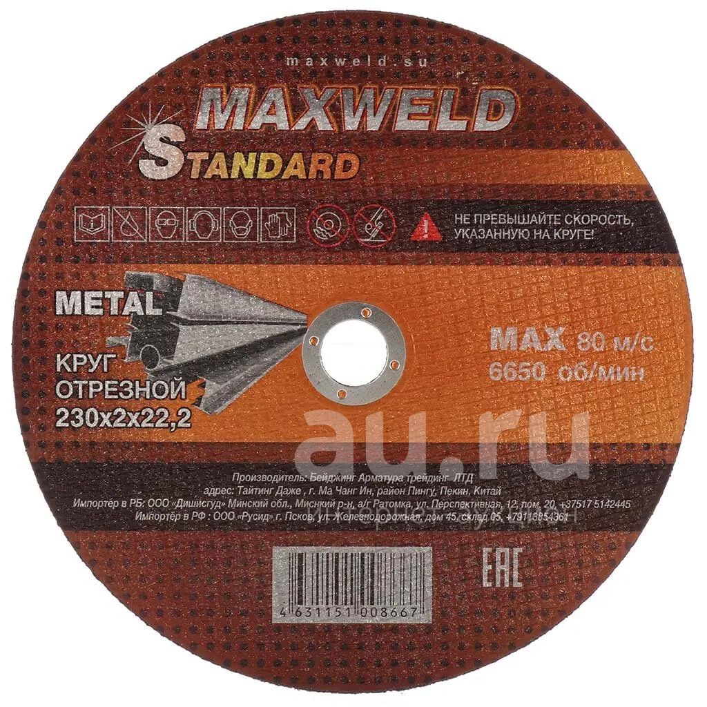 Круг отрезной по металлу, Maxweld, Standart, диаметр 230х2 мм, посадочный диаметр 22.2 мм