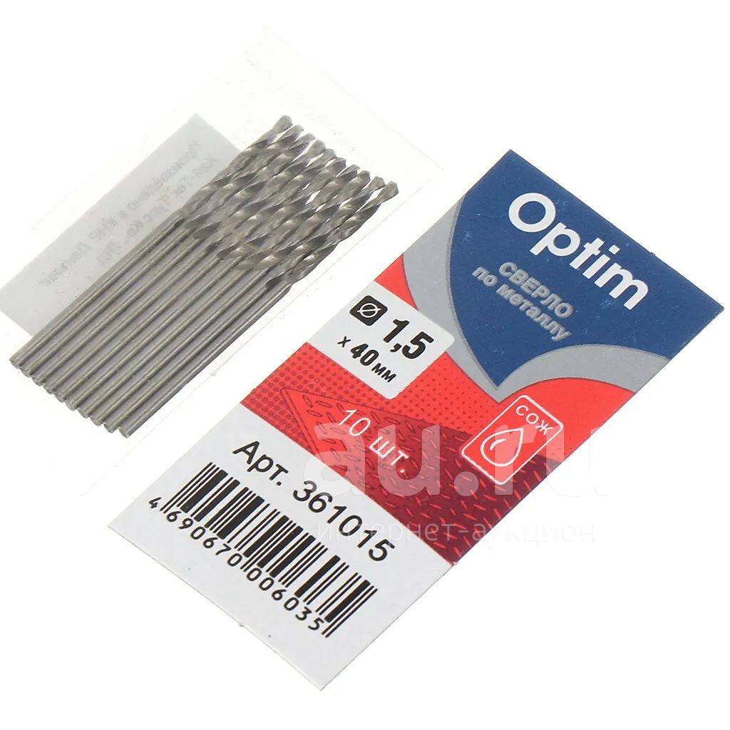 Сверло по металлу, 10 шт, Optim, диаметр 1.5х40 мм, цилиндрический хвостовик, 361015