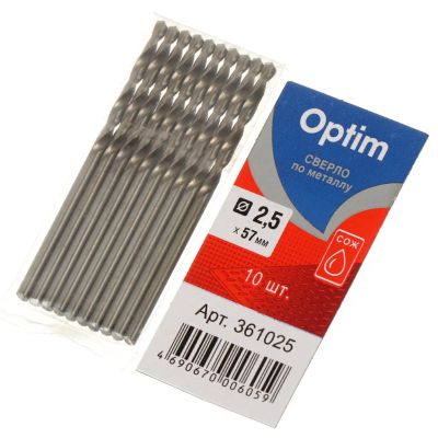 Сверло по металлу с цилиндрическим хвостовиком Optim - хорошего качества оснастка для сверления отверстий в черных нелегированных сталях. Для увеличения ресурса сверл по металлу Optim рекомендуется при работе использовать смазочно-охлаждающую жидкость. Сверла бытового назначения, идеально подходят для работы в домашних условиях.