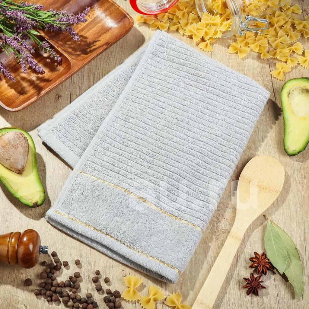 Полотенце кухонное махровое, 40х60 см, 500 г/м2, 100% хлопок, Оксфорд, светло-серое, Узбекистан