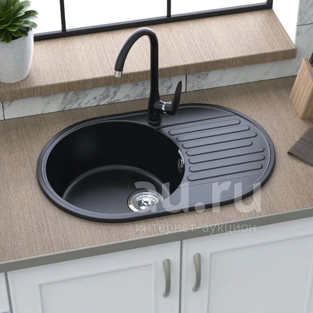 Мойка кухонная врезная, GranFest, Quarz, кварцевый песок, 737х478 мм, без сифона, черная, GF-Z18