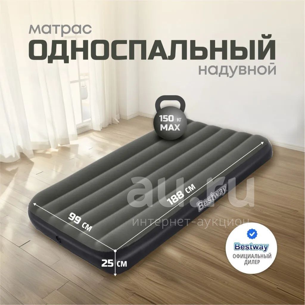 Матрас Bestway, выполненный из прочного флокированного винила, обеспечивает комфортный и здоровый сон в любых условиях. Его уникальная конструкция позволяет ему сохранять форму даже при неравномерном распределении нагрузки. Этот матрас легко надувать и сдувать, что делает его прекрасным выбором для путешествий или отдыха на природе. Кроме того, он может служить дополнительным спальным местом в квартире или доме. Если пространство ограничено, надувные матрасы становятся отличным решением для размещения гостей. Всё, что нужно сделать, - это надуть матрас и разместить его в свободной комнате.