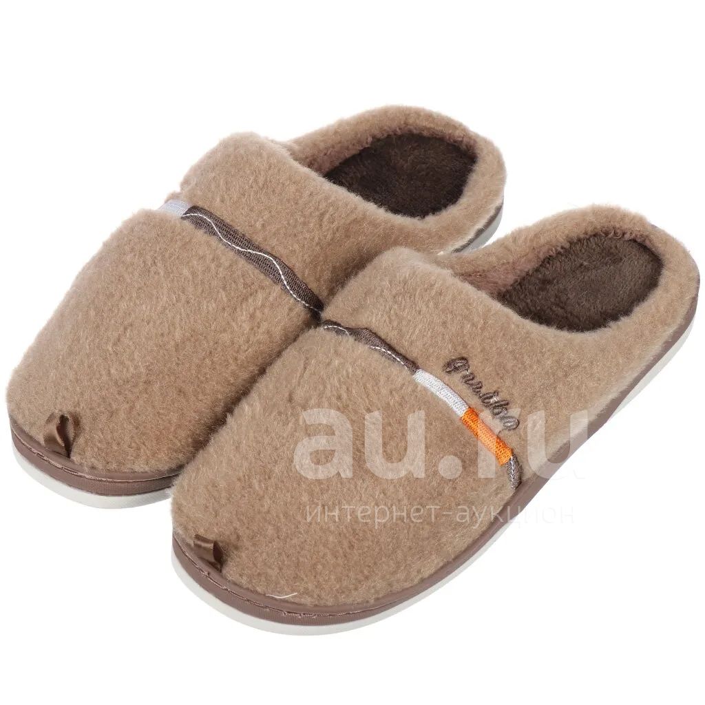 Тапки для мужчин, бежевые, р. 44-45, закрытые, мех, A210045