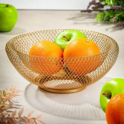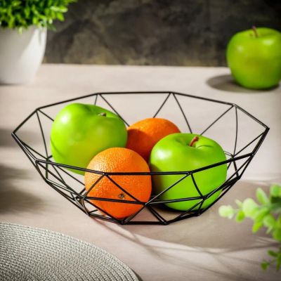 Стильная металлическая корзина для фруктов впишется в любой интерьер Вашего дома и всегда будет радовать Вас и Ваших гостей. Корзина имеет оригинальный геометрический дизайн.