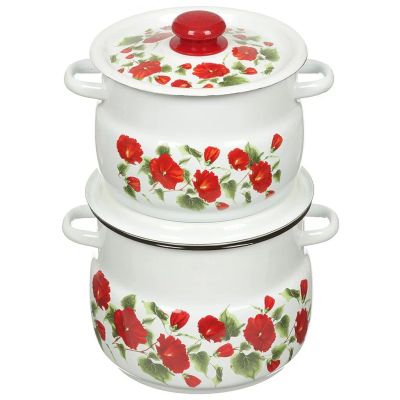 Набор посуды эмалированная сталь, 3 предмета, 2, 4, 5.5 л, индукция, СтальЭмаль, Чайный домик, 1с408